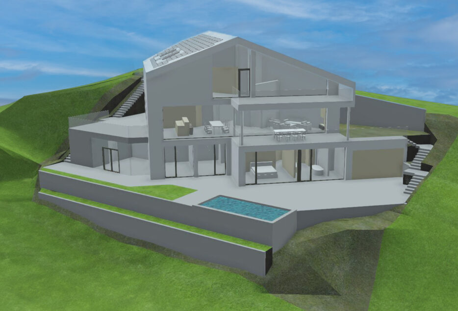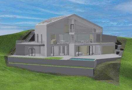 Das Neubauprojekt vereint zeitgemässes Design mit höchstem Wohnkomfort und nutzt das Potenzial des herausfordernden Terrains optimal aus.