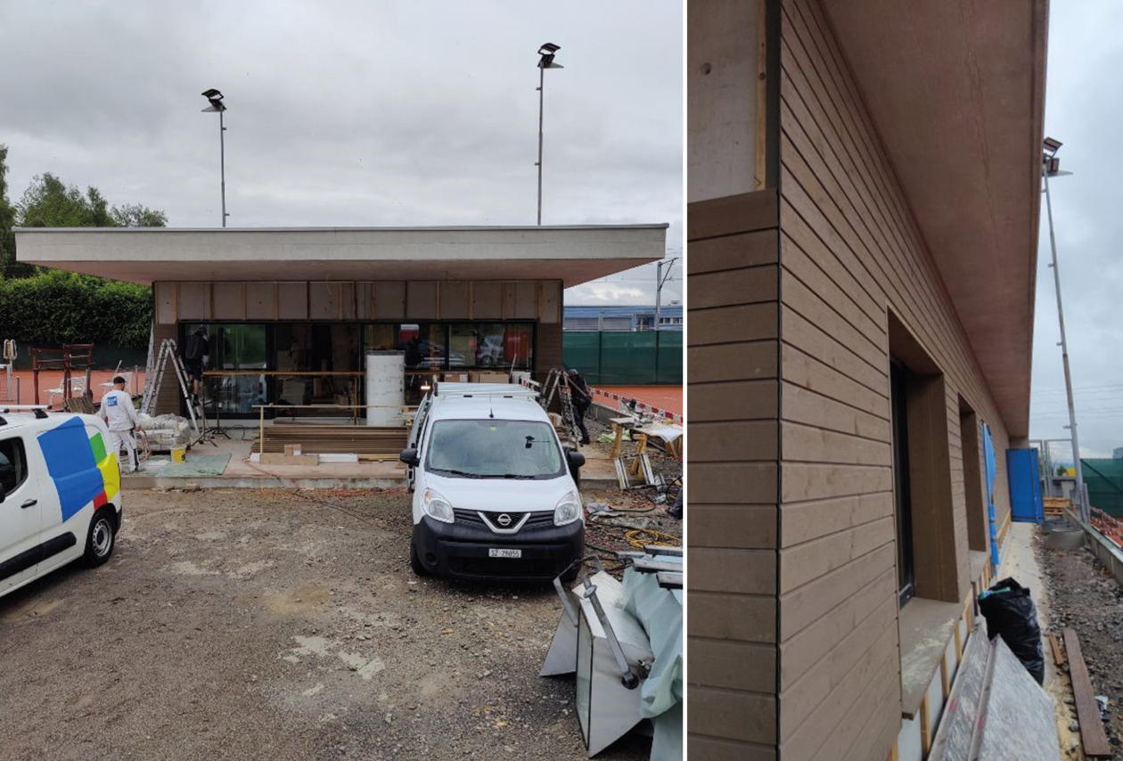 Das Clubhaus des Tennisclubs Höfe nimmt Form an! Zurzeit wird die Fassade mit vorvergrauter, nordischer Fichte fertiggestellt. Als nächstes folgen die Umgebungsarbeiten, die Vollendung des Innenausbaus und die Inbetriebnahme.